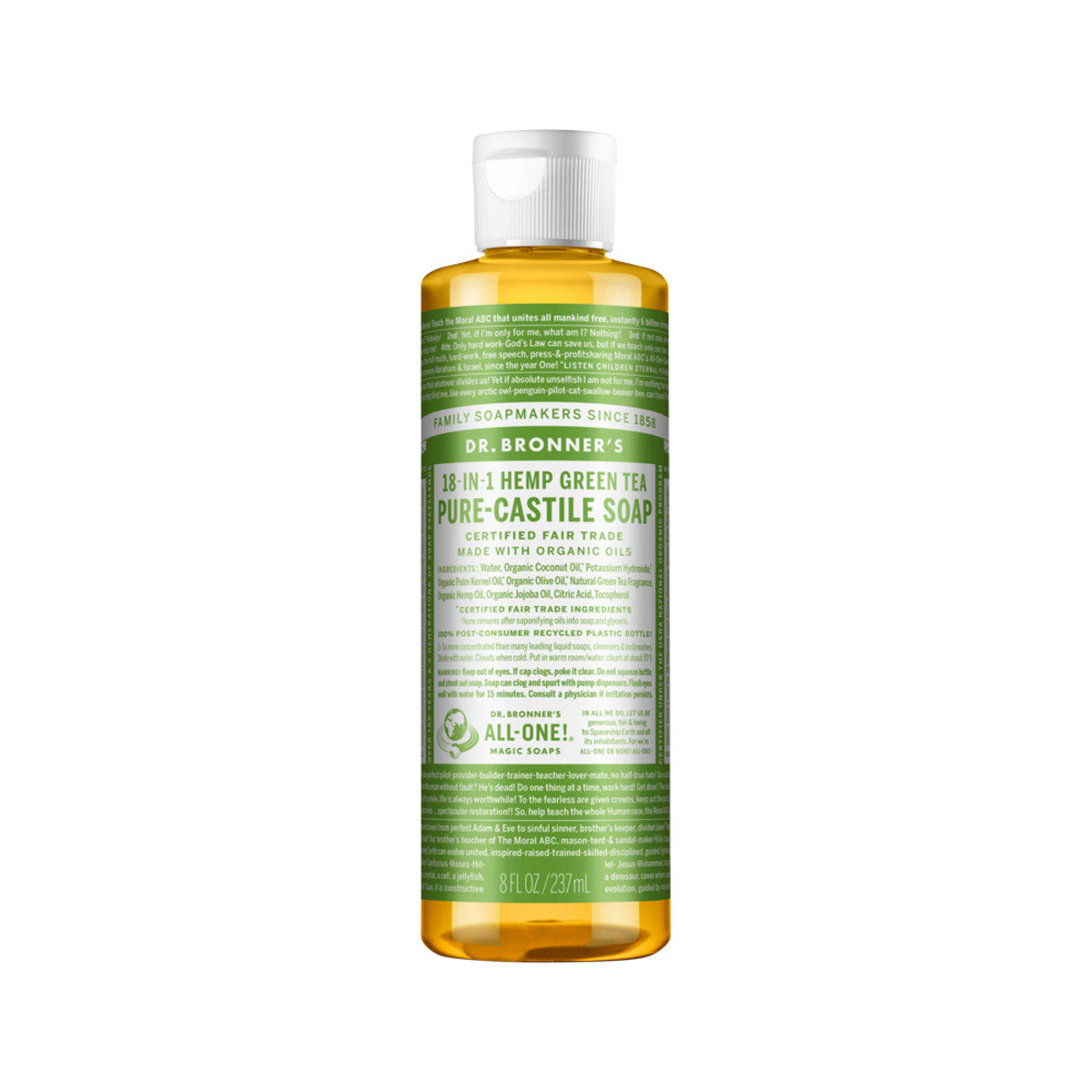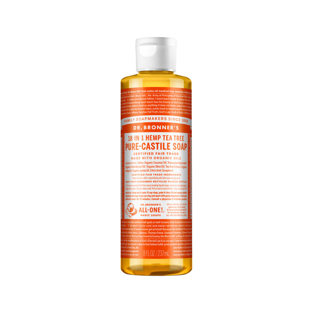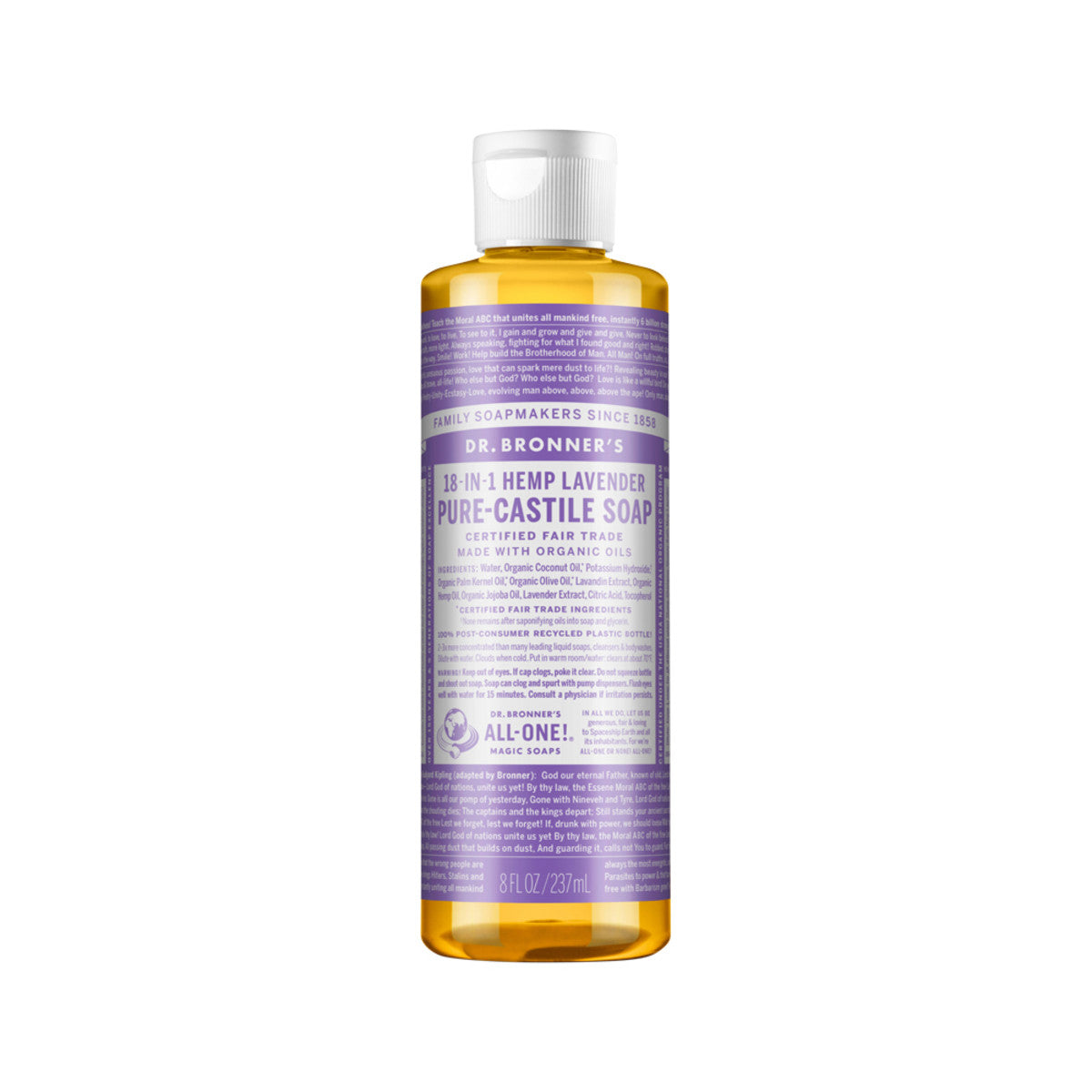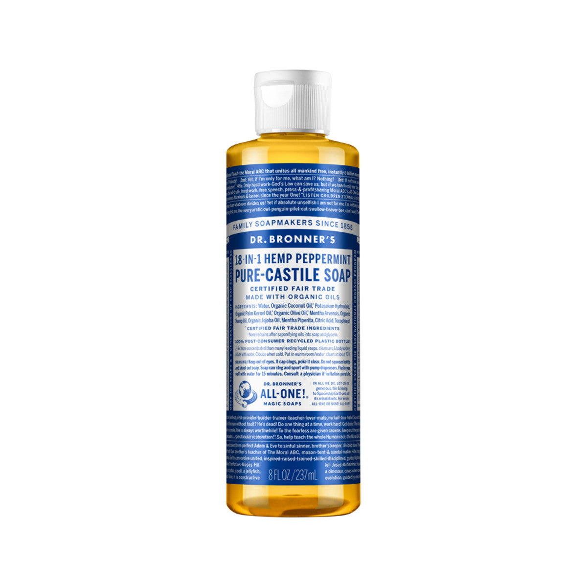 Pure Castile liquid soap from Dr Bronner's is made with organic oils and certified fair trade.