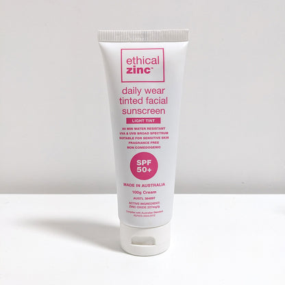 Daily Wear Tinted Facial Sunscreen from Ethical Zinc is formulated with certified natural zinc oxide that is easy to apply and perfect for everyday wear.