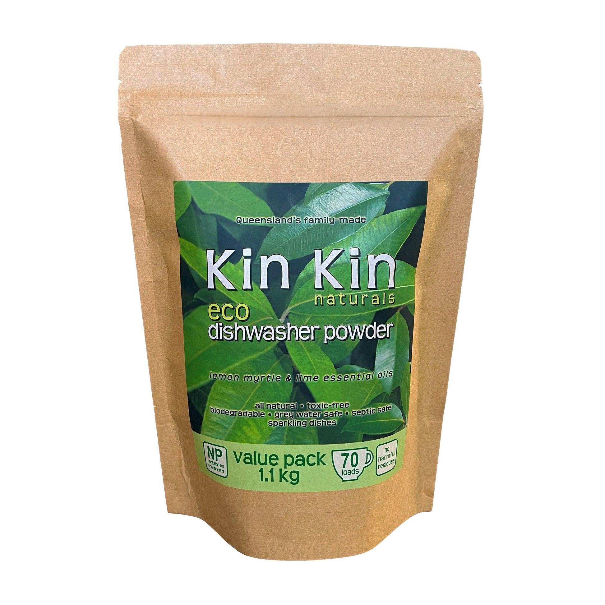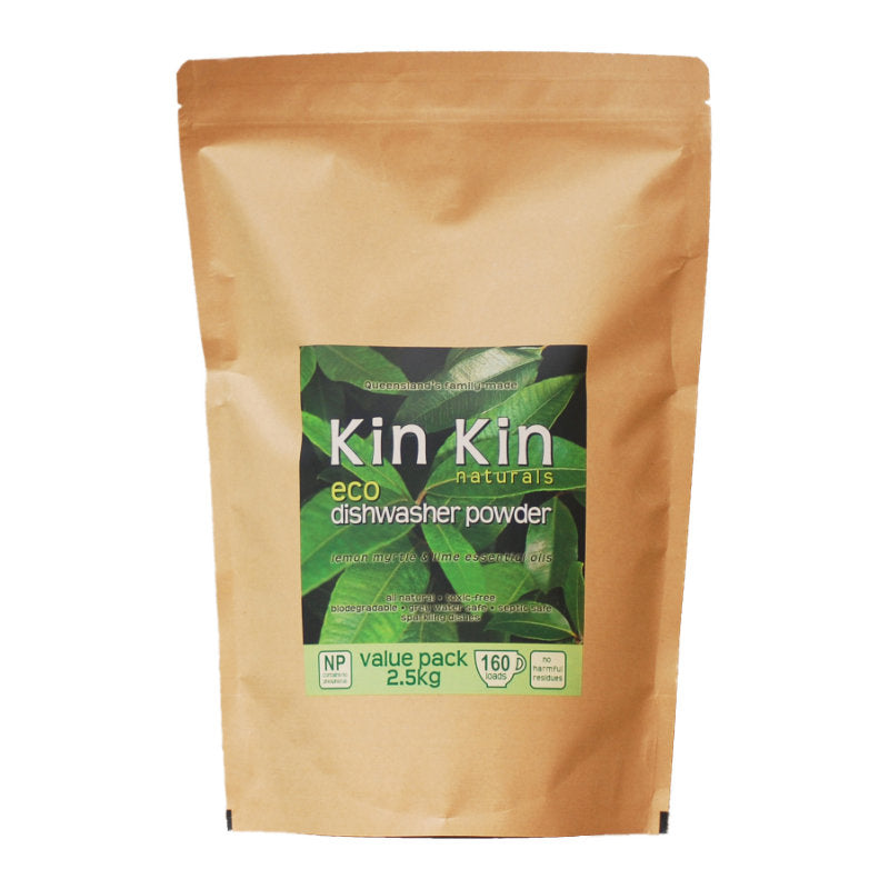 Eco Dishwasher Powder from Kin Kin Naturals is our favourite all-natural, ultra-concentrated dishwashing cleaner.