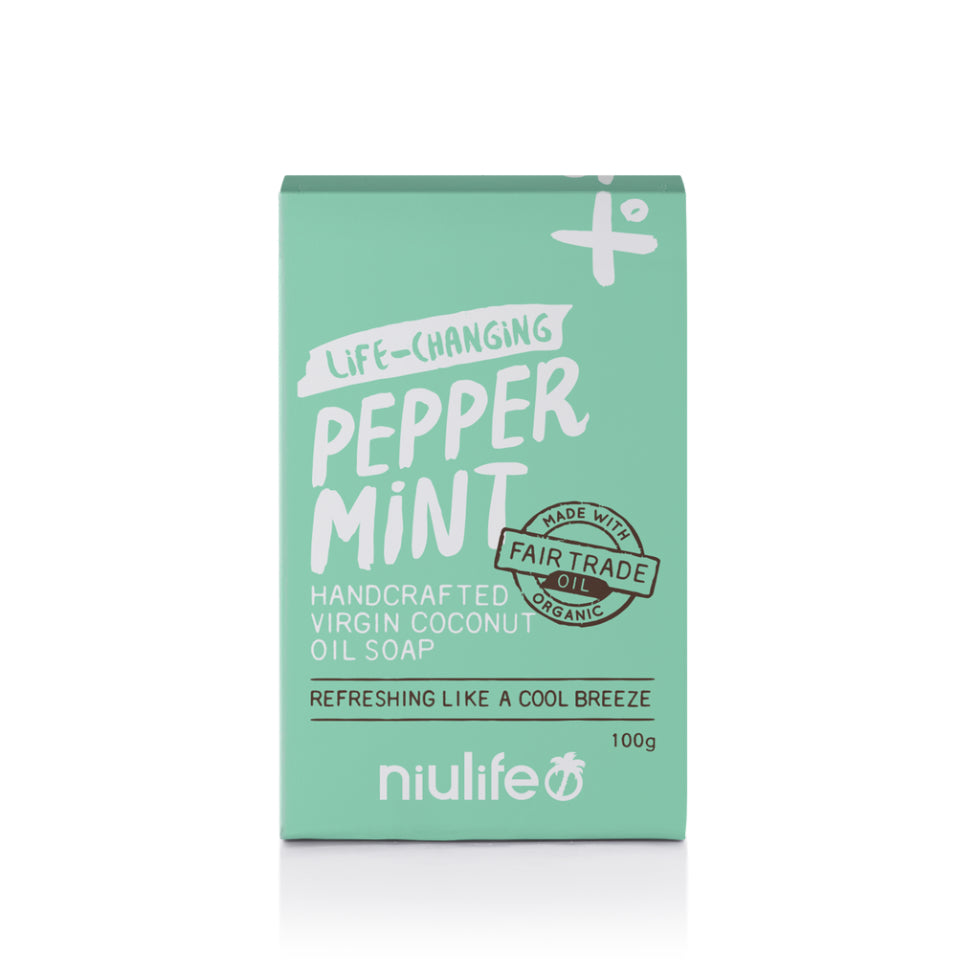 Peppermint Coconut Oil Soap from Niulife is crafted from organic fair-trade coconut oil and infused with peppermint essential oil for a refreshing burst of energy.